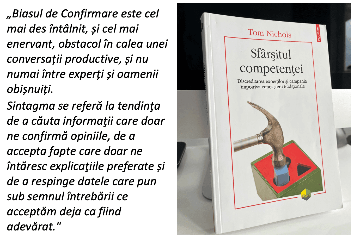 În domeniile securității private și al securității informației, luarea deciziilor corecte poate face diferența dintre siguranță și vulnerabilitate. Cu toate acestea, chiar și cei mai experimentați profesioniști pot cădea pradă unei capcane psihologice subtile și adesea subestimate, Biasul de Confirmare. Acest fenomen psihologic, discutat amplu de Tom Nichols în cartea sa, “Sfârșitul competenței – Discreditarea experţilor şi campania împotriva cunoaşterii tradiţionale”, se referă la tendința noastră de a căuta, interpreta și reține informațiile într-un mod care confirmă credințele sau ipotezele noastre preexistente, ignorând sau minimalizând informațiile care le contrazic.