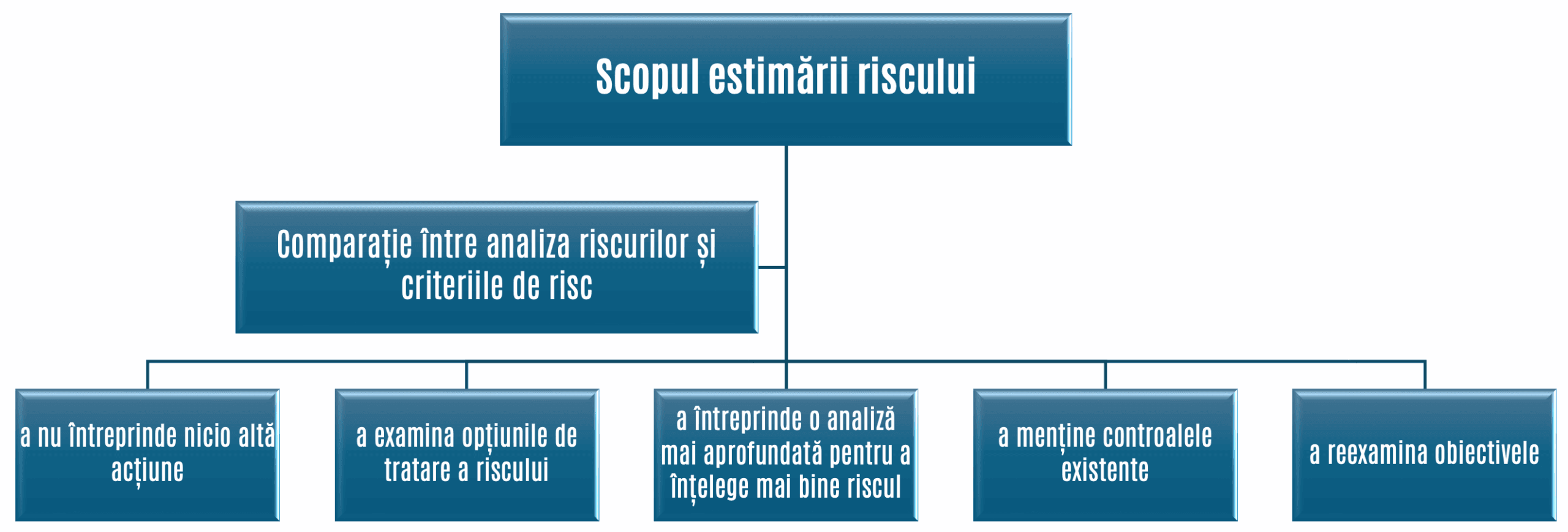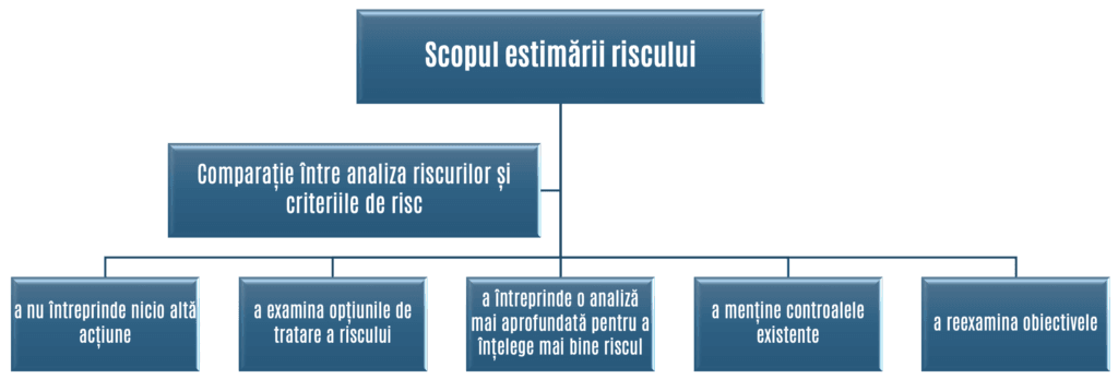 Acum că am identificat și analizat riscurile, suntem pregătiți să trecem la etapa următoare: estimarea riscului. Scopul acestei etape este să ne ajute să luăm decizii informate despre ce ar trebui să facem mai departe. Pe scurt, estimarea riscului ne spune dacă un risc este suficient de serios încât să necesite acțiuni suplimentare sau dacă poate fi acceptat așa cum este. Așadar, estimarea este despre comparație, comparăm rezultatele analizei riscurilor cu criteriile de risc stabilite pentru a decide dacă și ce măsuri suplimentare sunt necesare.