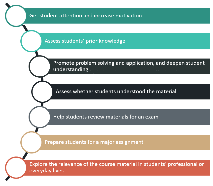Brainstorming is a staple methodology for any problem-solving activity where trainees generate as many ideas as possible and post them on board. The purpose of brainstorming in training is to encourage trainees to think creatively and critically, and should be no evaluation of ideas in the first stage. During the responses evaluation, the second stage of brainstorming, trainees should think critically about the ideas generated. I recommend “Guide To Brainstorming For Trainers“.